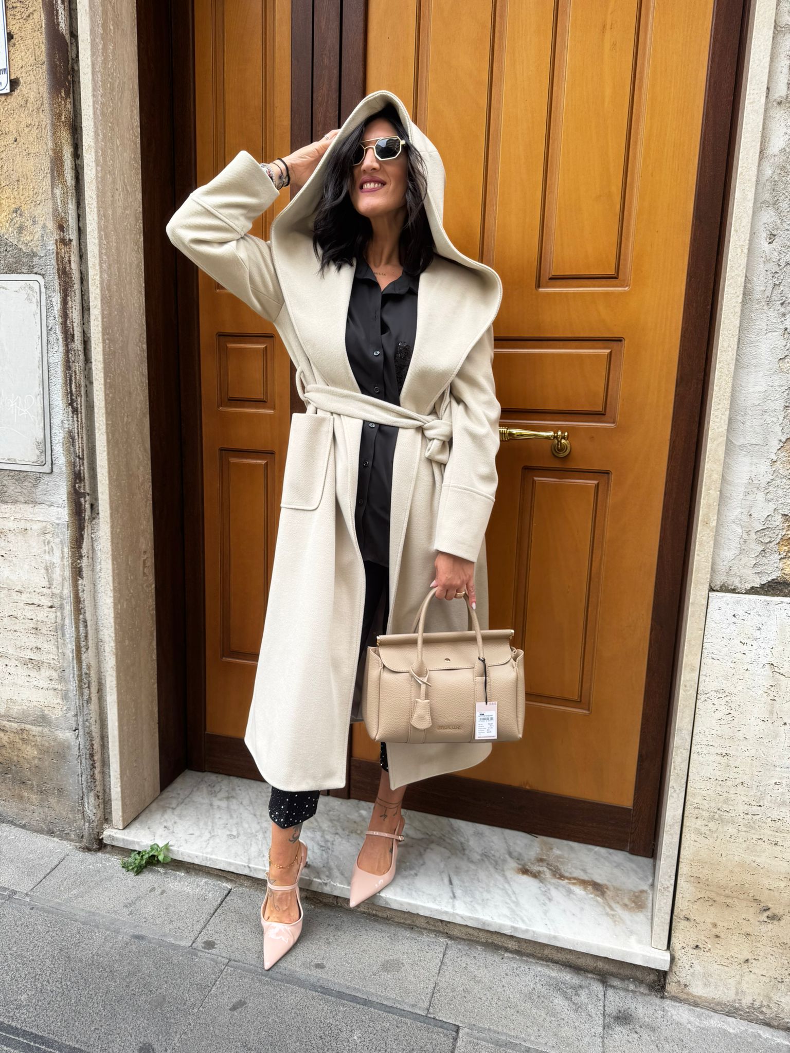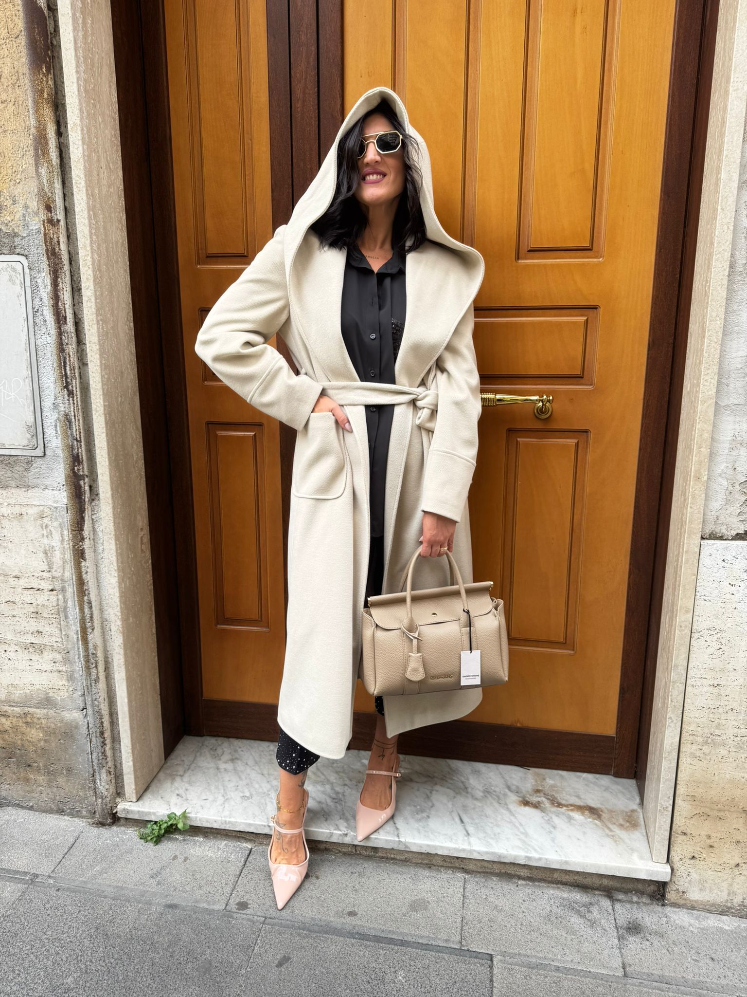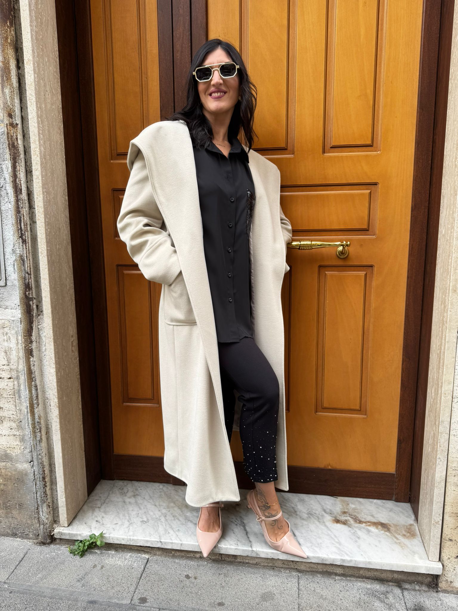 Cappotto lungo modello accappatoio con cappuccio Lizalù AZZURRA