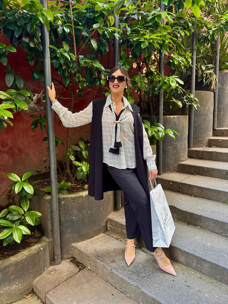 Blusa mezza manica in chiffon con scollo a bavero Lizalù BER
