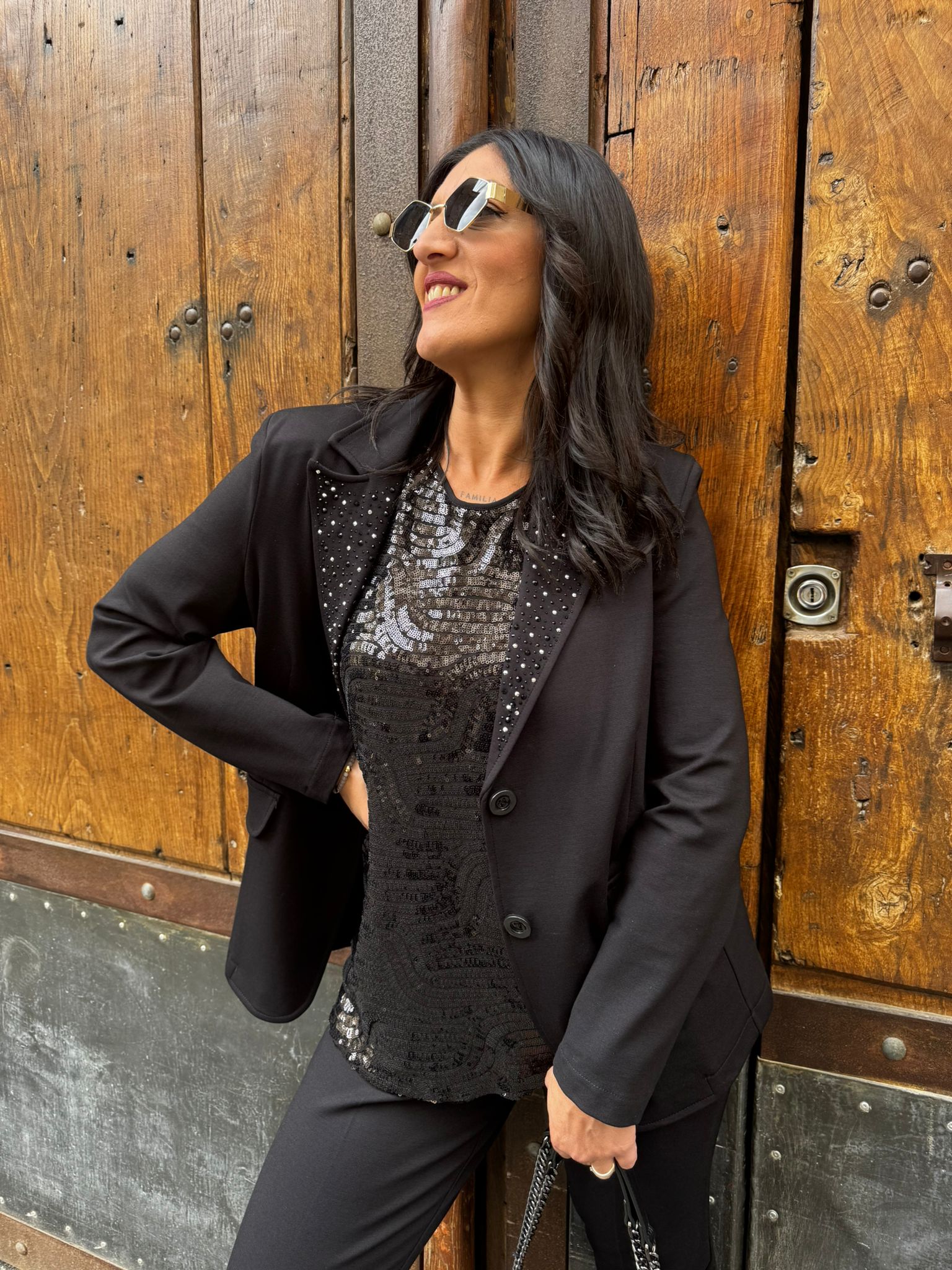 Giacca punto milano sfoderata con colletto in strass Lizalù LILIANA