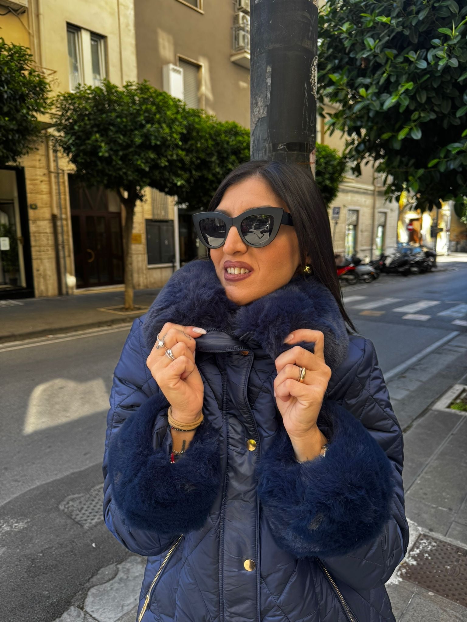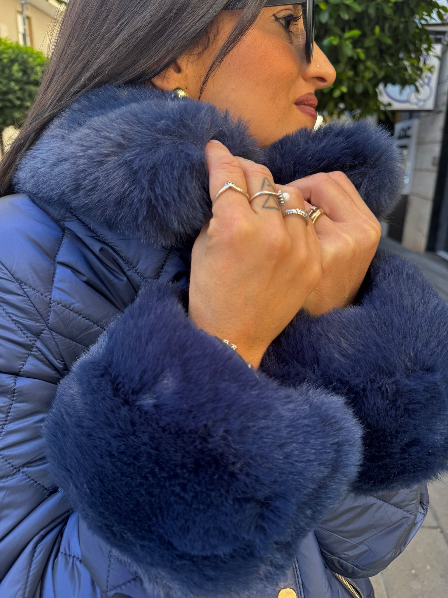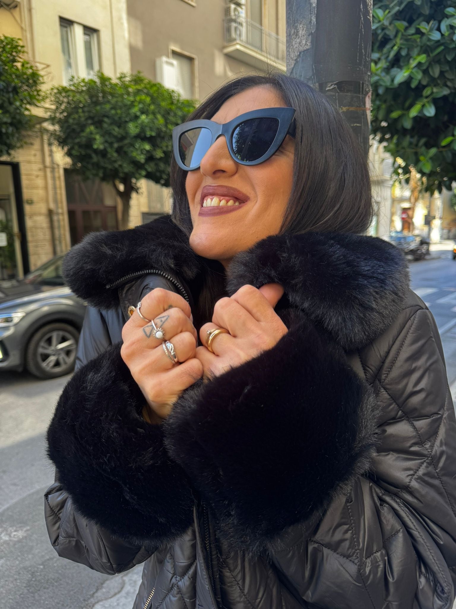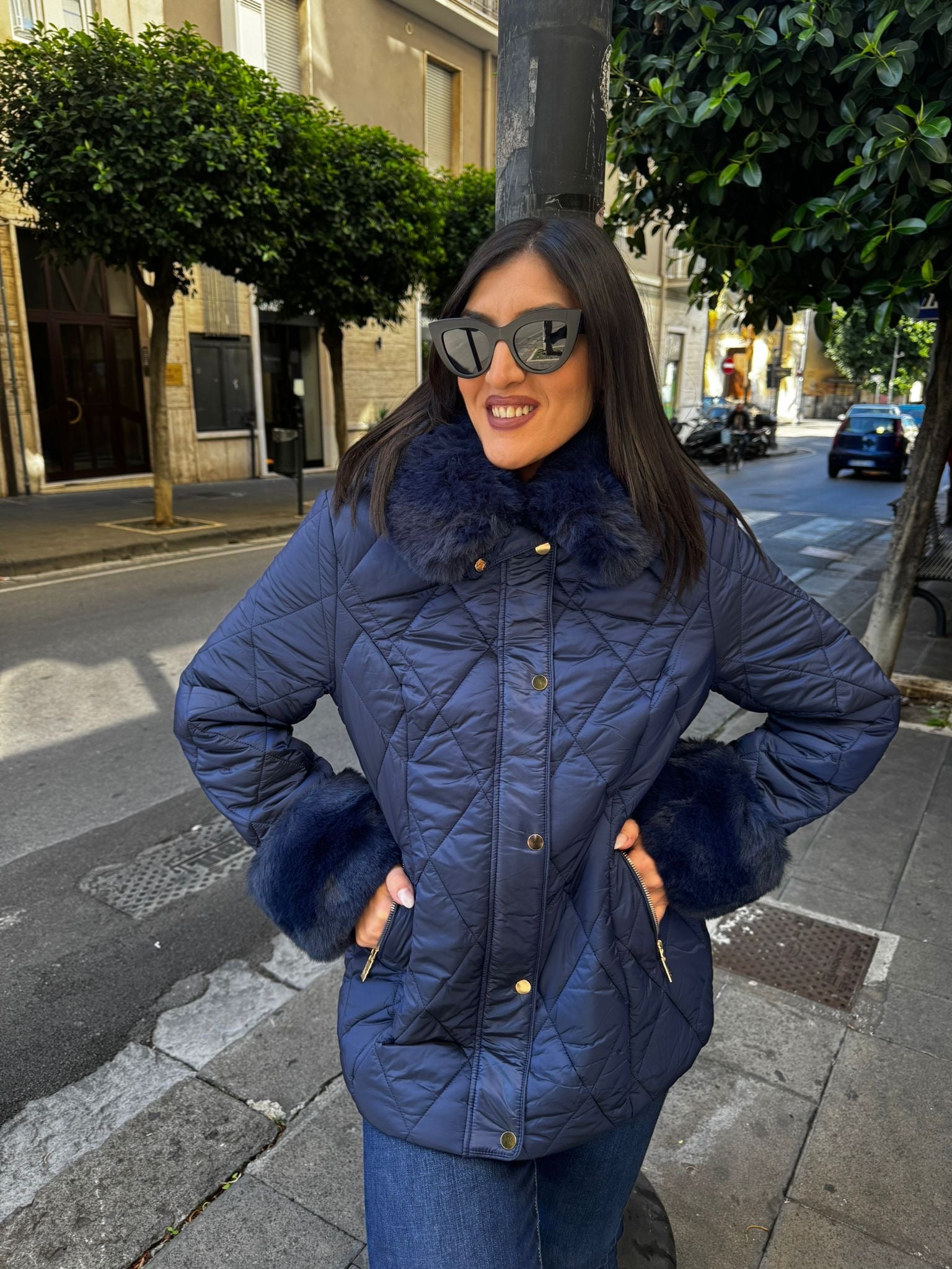 Piumino trapuntato con collo e maniche in ecopelliccia Lizalù 1072