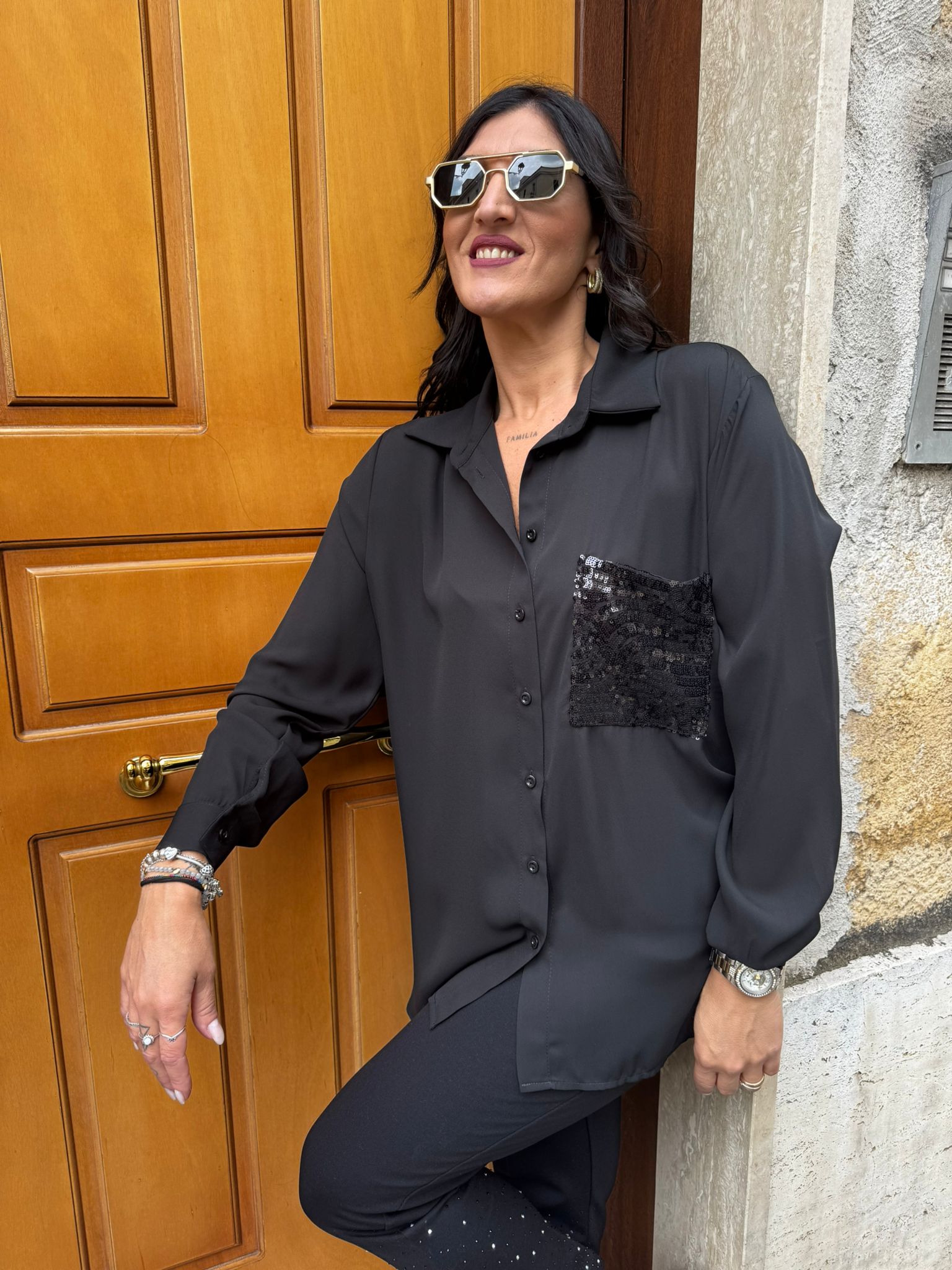 Camicia in chiffon con taschino in paillettes Lizalù PATTY