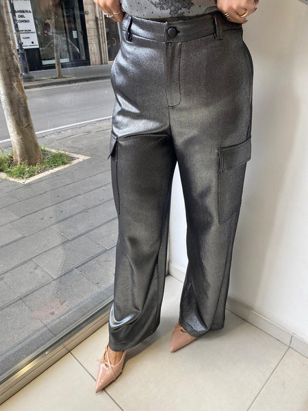 Pantalone in tessuto metallizzato modello cargo Akè 3857