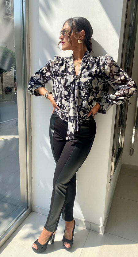 Pantalone in panno elastico con banda laterale in ecopelle Lizalù 8710
