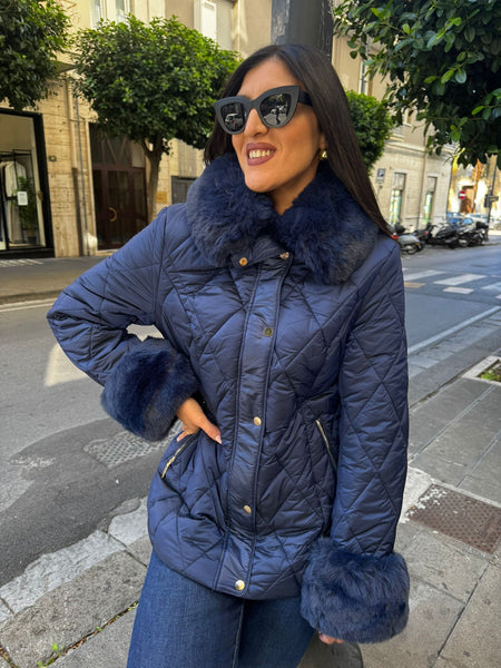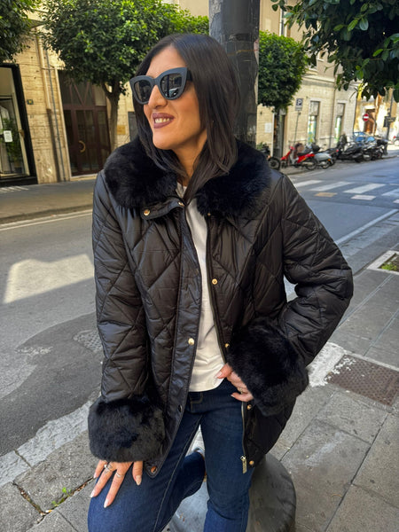 Piumino trapuntato con collo e maniche in ecopelliccia Lizalù 1072