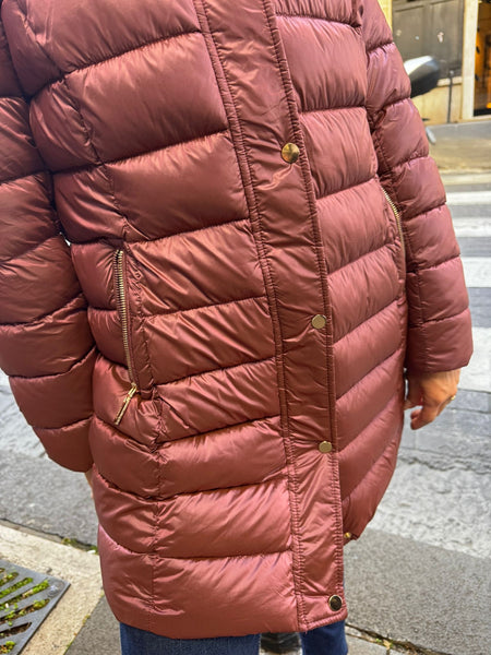 Piumino lungo con cappuccio e coulisse in vita Lizalù N180