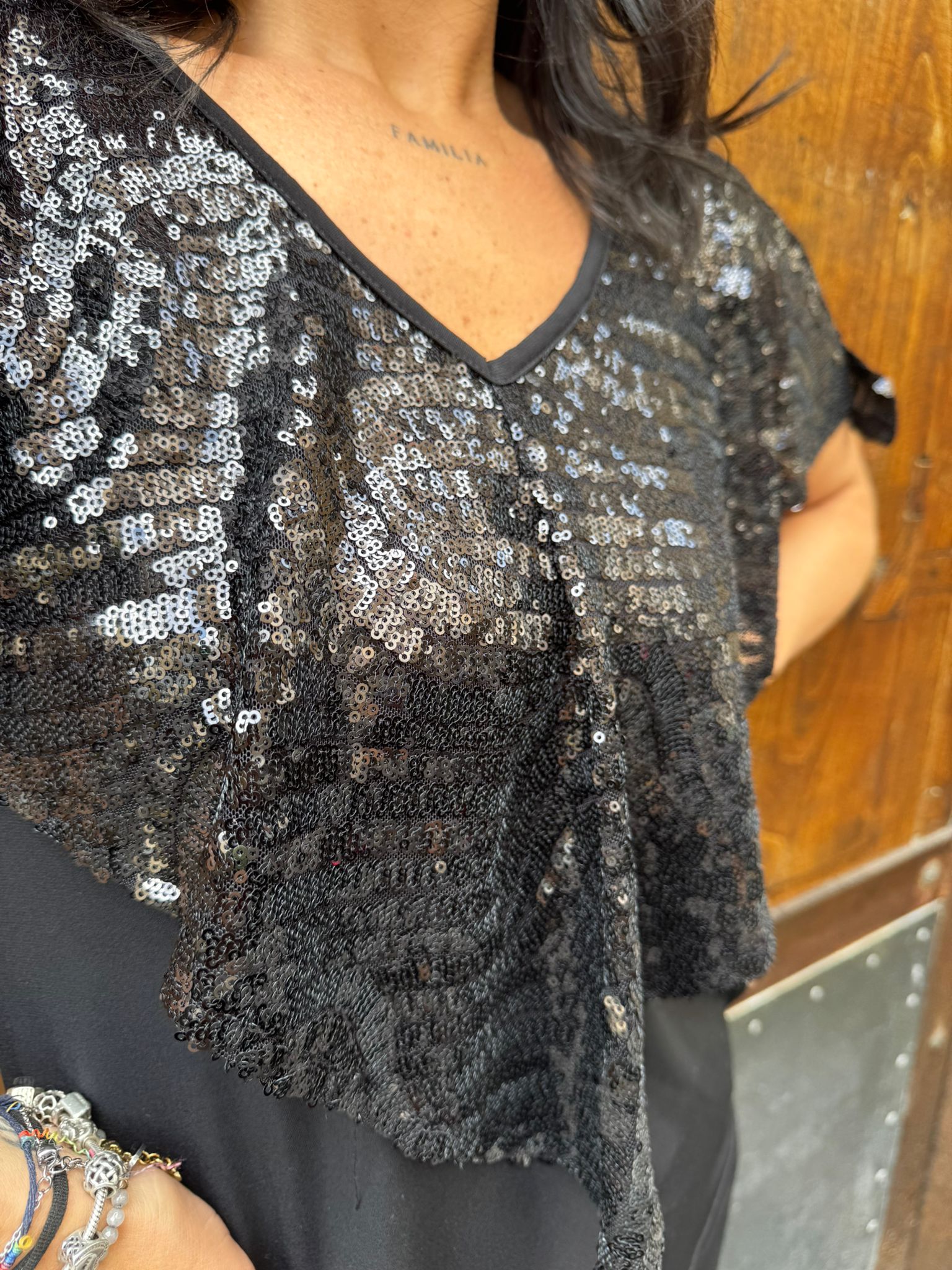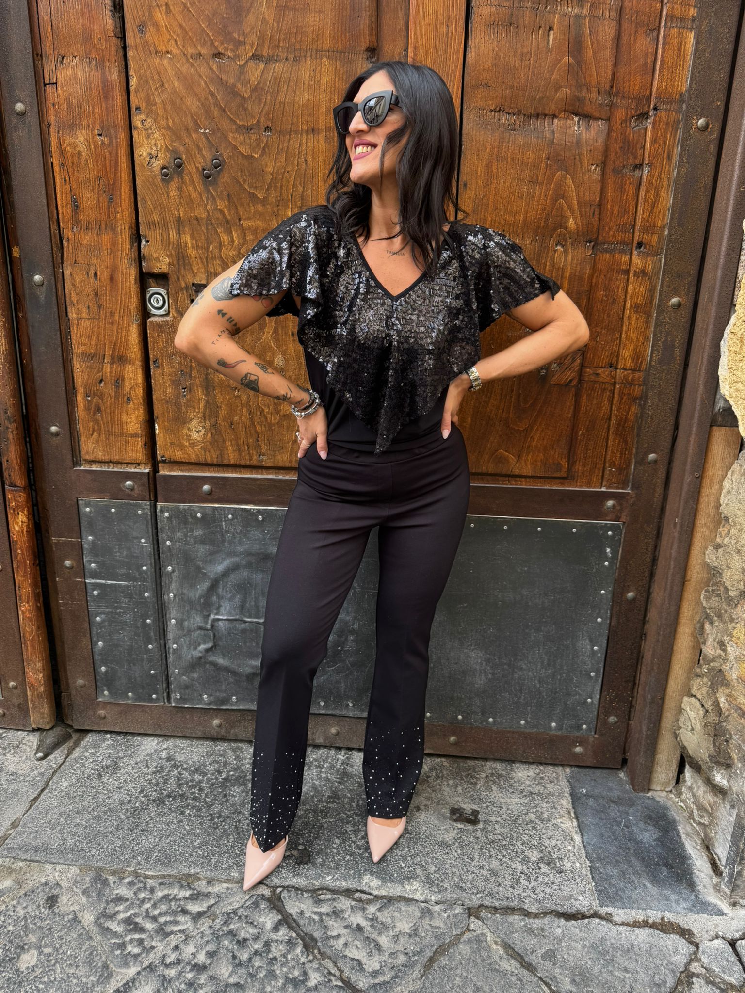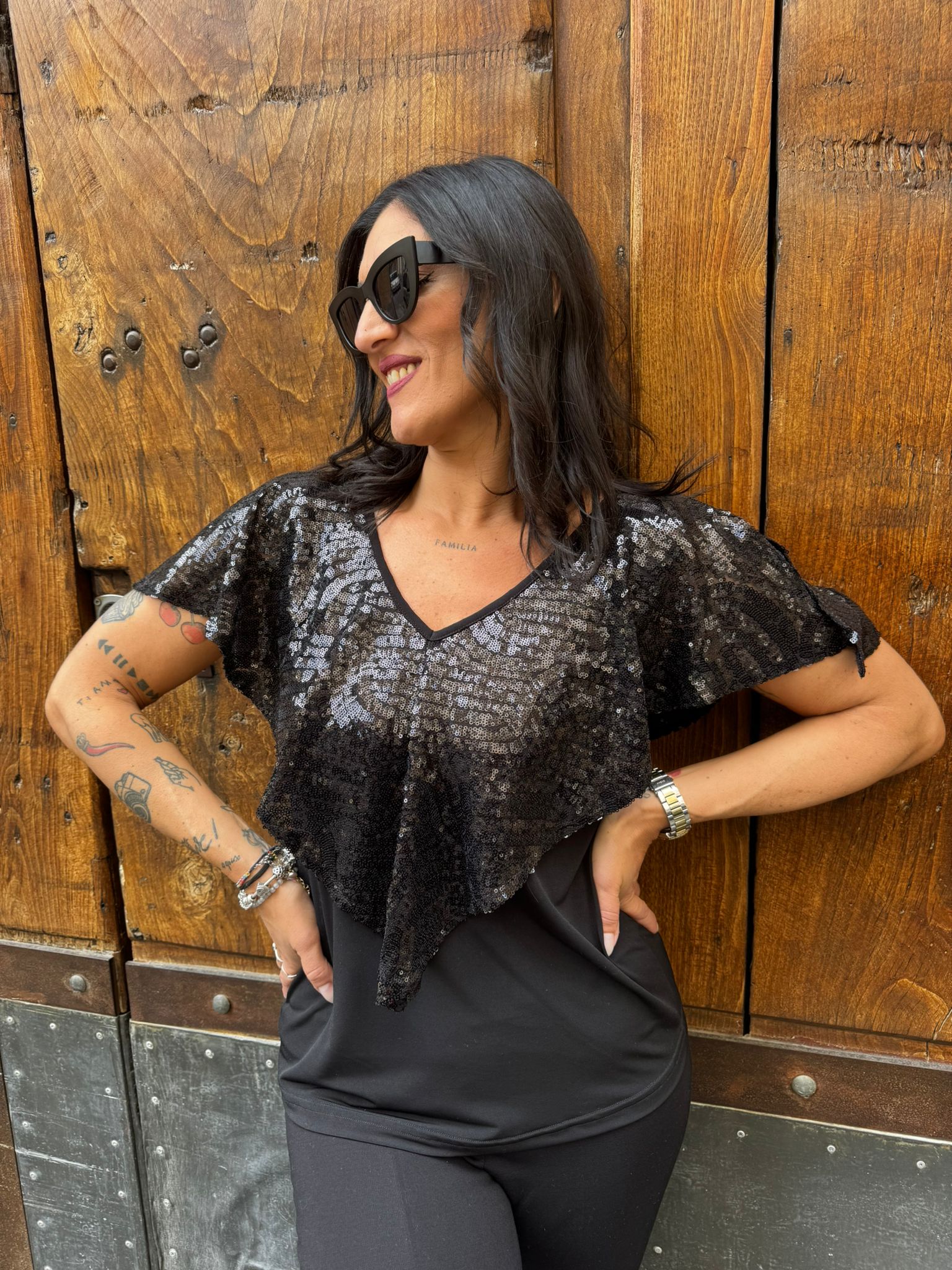 Blusa con balza sullo scollo in paillettes Lizalù S048