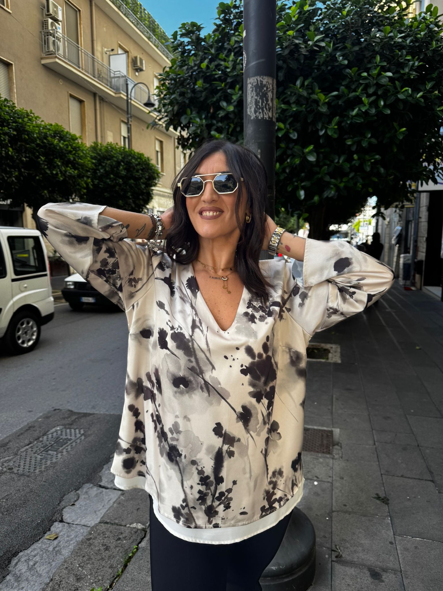 Blusa fantasia con doppia balza Lizalù 1001