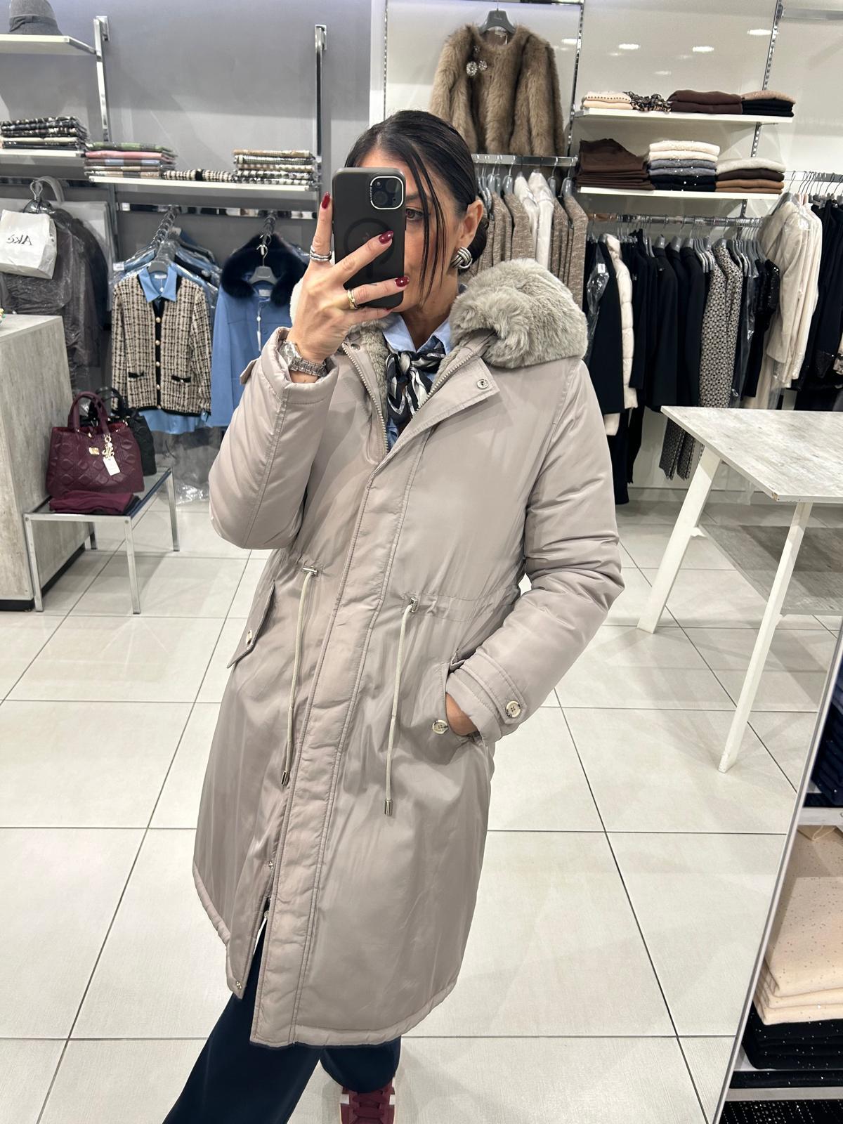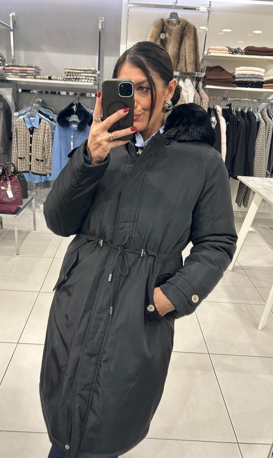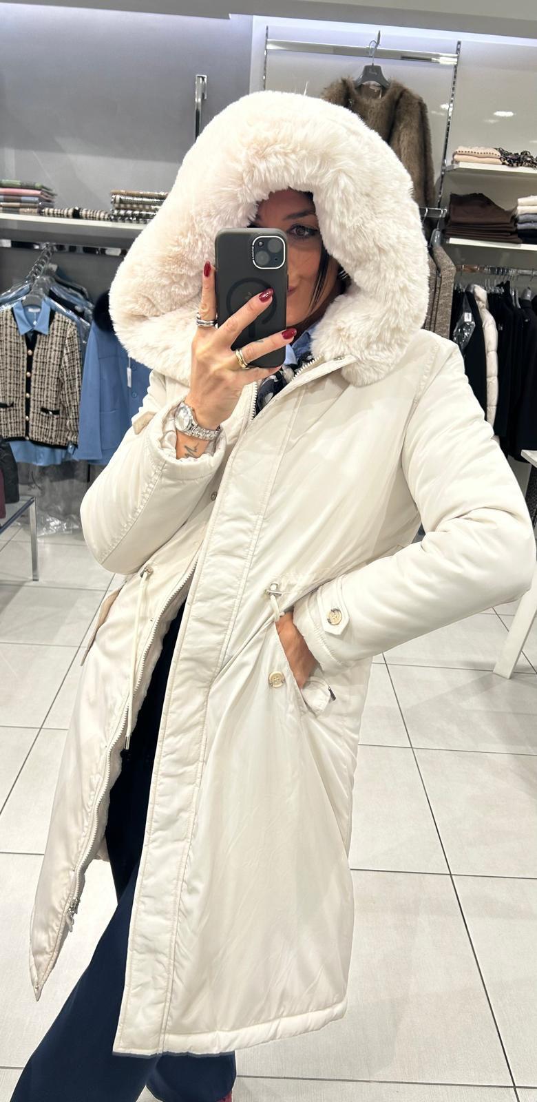 Piumino lungo con cappuccio e interno in ecopelliccia SANDRO FERRONE 2262
